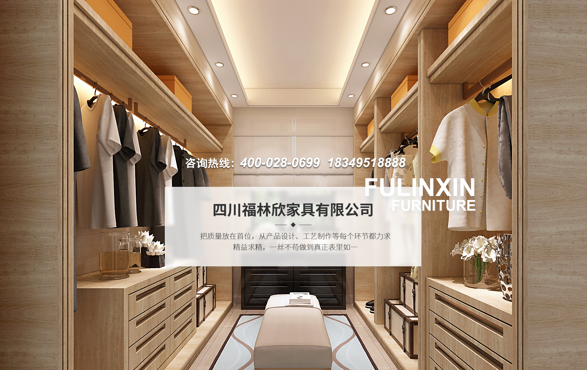 四川福林欣家具有限公司是一家專業(yè)生產(chǎn)整體衣柜、衣帽間、酒柜、鞋柜、電視墻、實(shí)木隔斷、免漆格柵、歐式美式墻板,免漆金屬條木飾面等多種系列的高端定制家具廠。